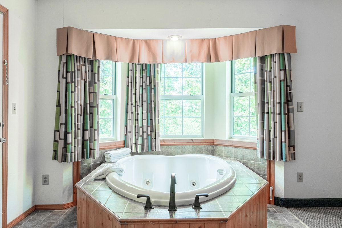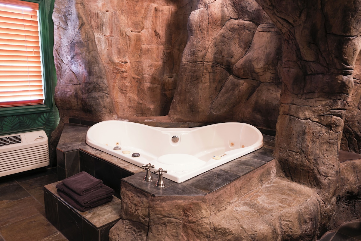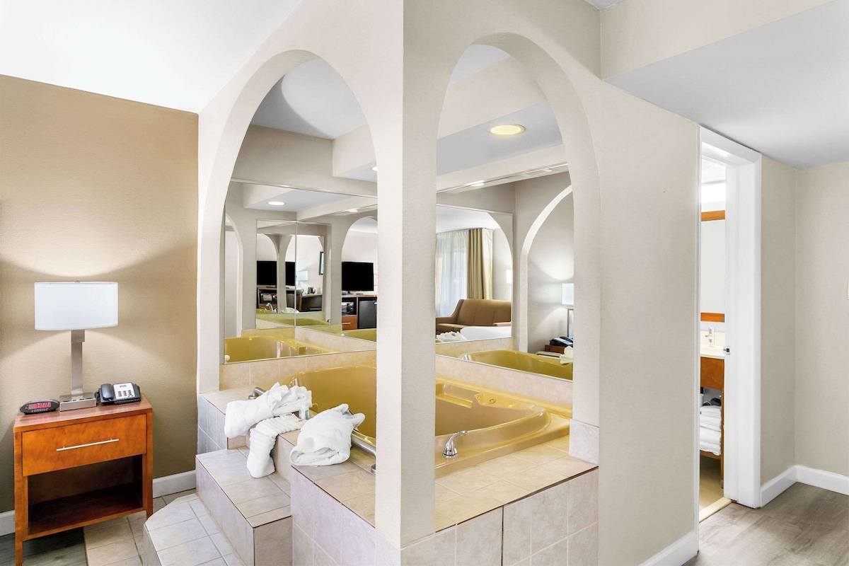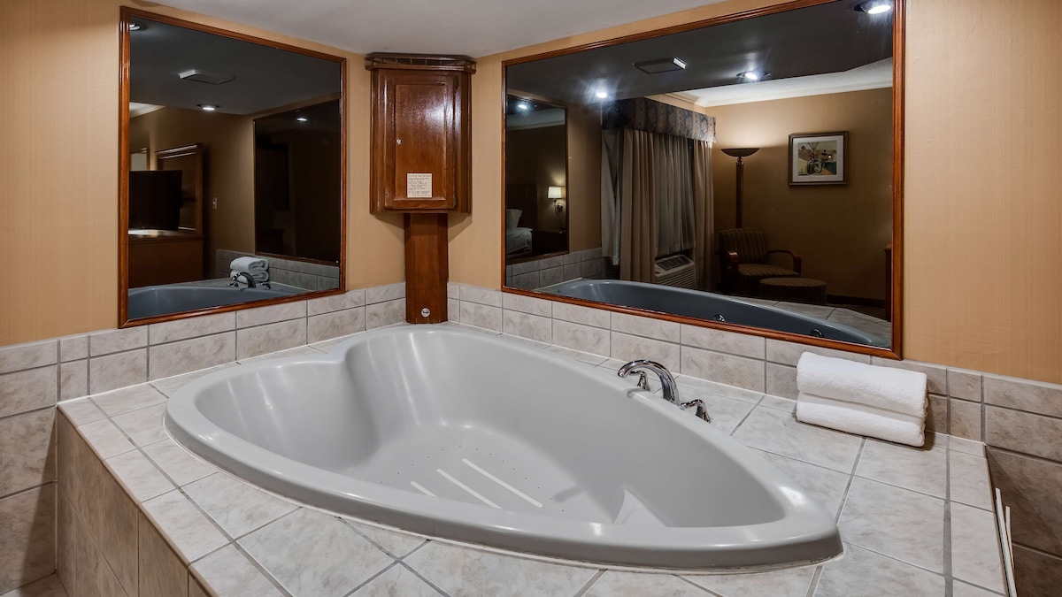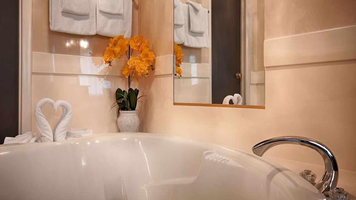Luxurious hideaway with heart‑shaped hot tub in room, pool and restaurant, 2.2 miles from Rolling Hills Golf Club.