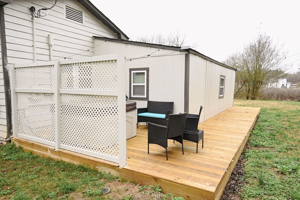 A little piece of Gatlinburg right here in Attalla – 2 bedrooms, WiFi, wheelchair access, and a relaxing hot tub.