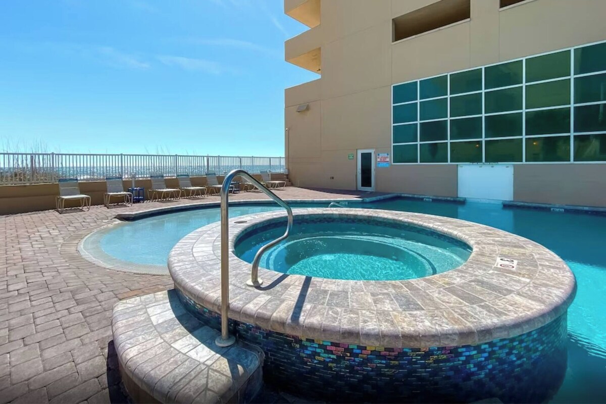 Luxury beachfront condo with access to a community hot tub and pools – perfect for a relaxing coastal escape.